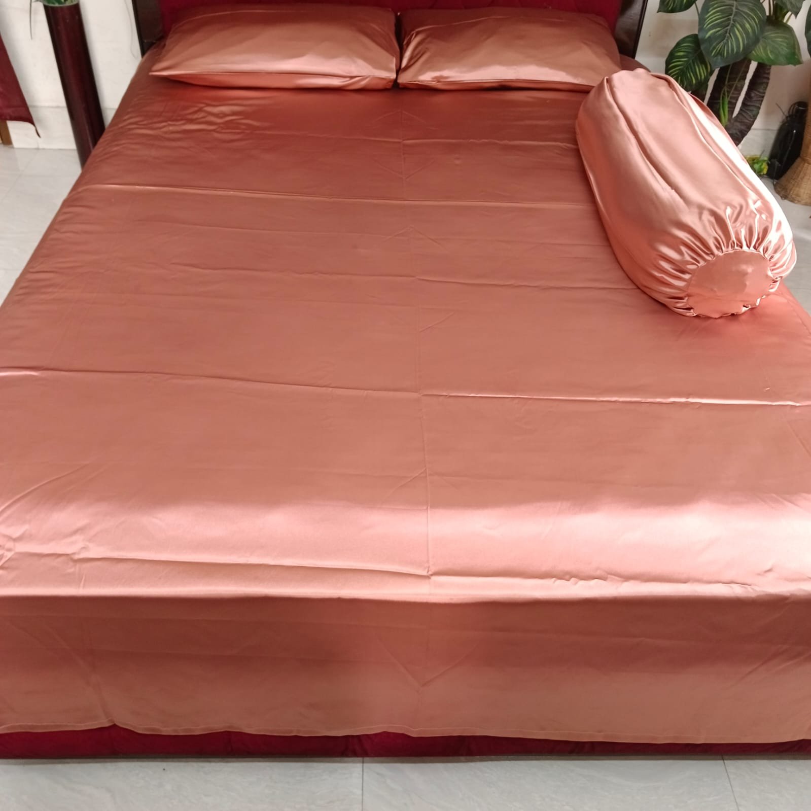 Coppers - Premium Satin Silk 1Bedsheet(8Ft×9Ft) +2Pillow cover +1Side Pillow cover, 2570 taka