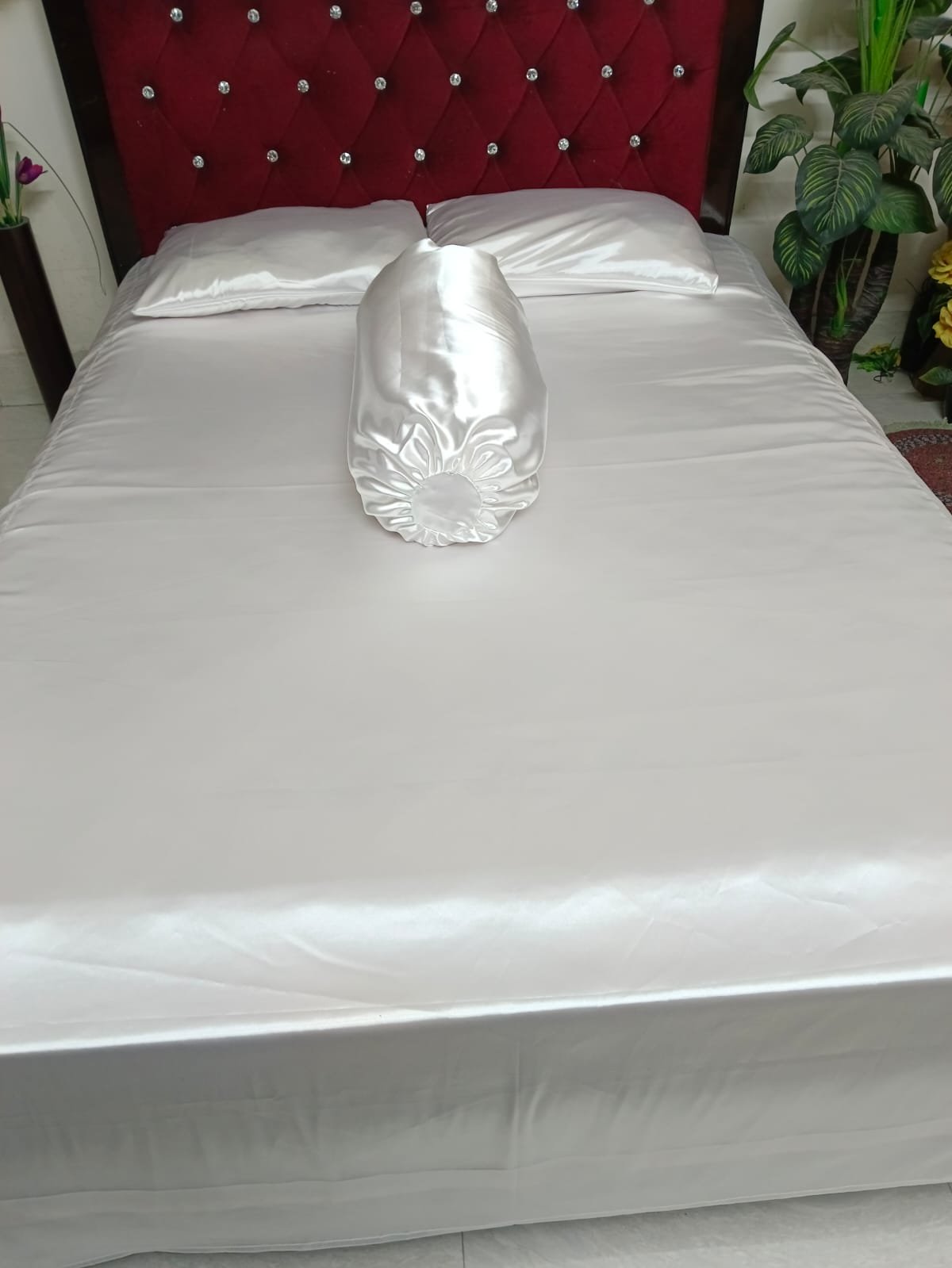 Off White – Premium Satin Silk 1Bedsheet(8Ft×9Ft) +2Pillow cover +1Side Pillow cover, 2570 taka